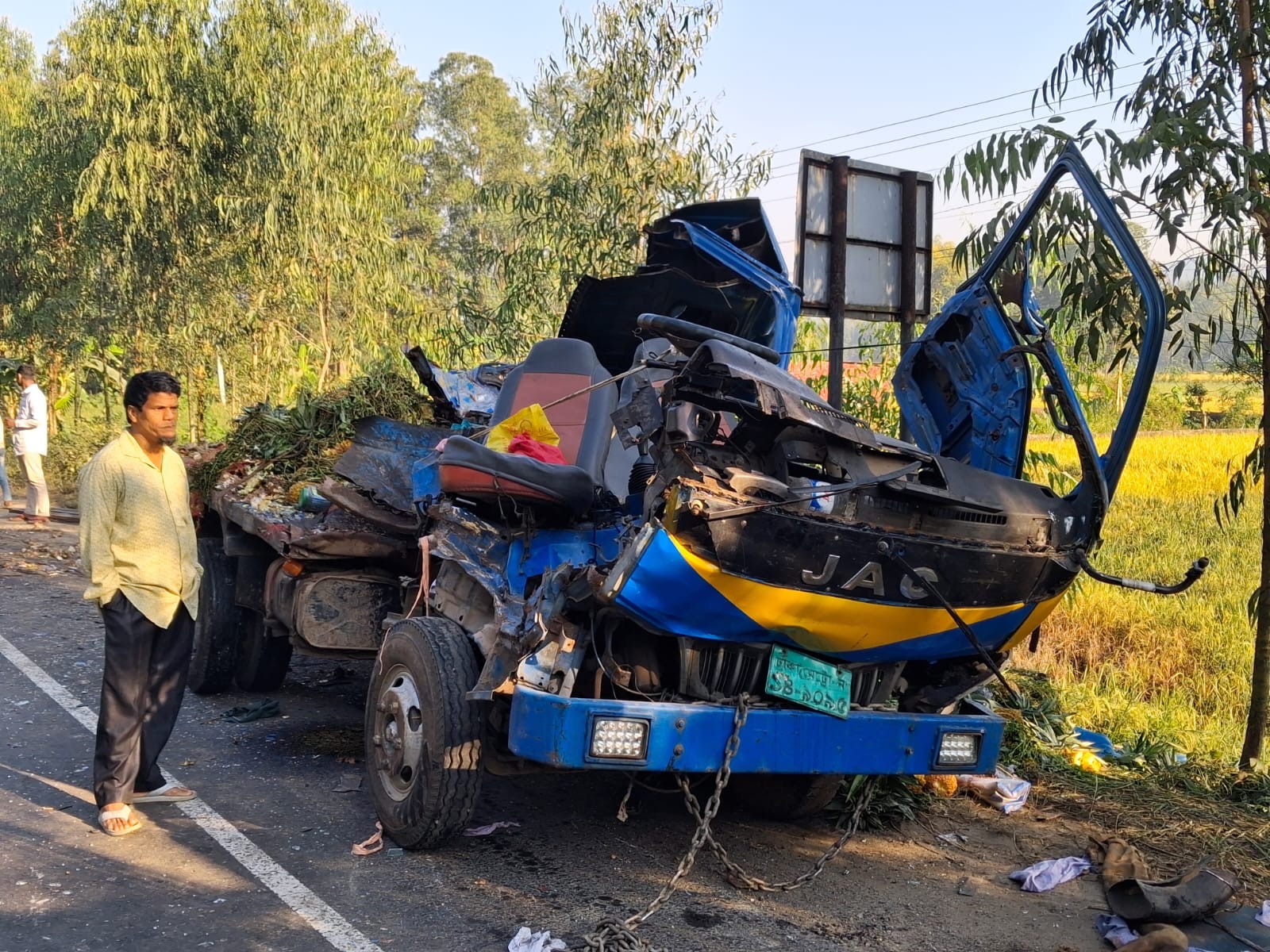 অজ্ঞাত গাড়ির ধাক্কায় সবজিবাহী পিকআপ ছিন্নভিন্ন, নিহত ১