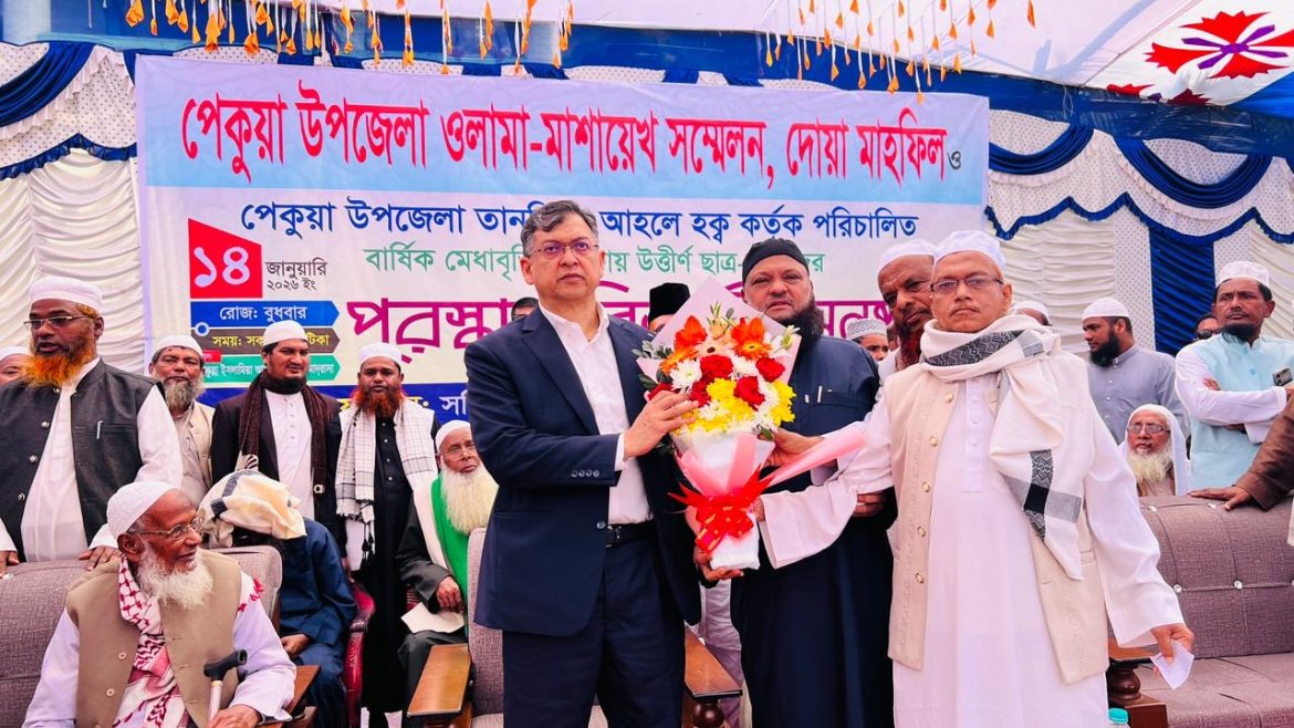 আজ বুধবার (১৪ জানুয়ারী) সকালে পেকুয়া আশরাফুল উলুম মাদ্রাসার মাঠে পেকুয়া উপজেলা ওলামা মাশায়েখ সম্মেলন ও পেকুয়া উপজেলা তানজিমে আহলে হক্ব পরিচালিত বার্ষিক মেধা বৃত্তি পরীক্ষায় উত্তীর্ণ ছাত্রছাত্রীদের মাঝে পুরস্কার বিতরণী অনুষ্ঠানে প্রধান অতিথির বক্তব্যে তিনি এসব কথা বলেন।