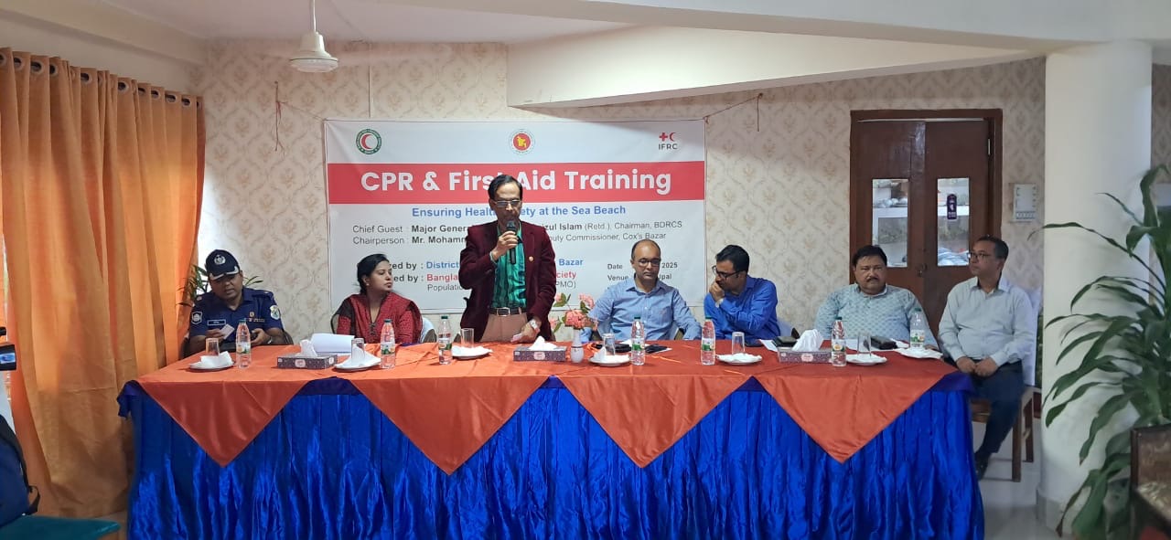 কক্সবাজারে পর্যটকদের স্বাস্থ্যঝুঁকি নিরসনে সিপিআর ও প্রাথমিক চিকিৎসা বিষয়ক প্রশিক্ষণ কর্মশালা অনুস্টিত