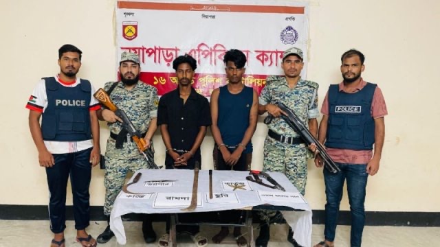 কক্সবাজারের টেকনাফে অভিযান চালিয়ে আগ্নেয়াস্ত্র ও দেশীয় অস্ত্রসহ দুই রোহিঙ্গা ডাকাতকে আটক