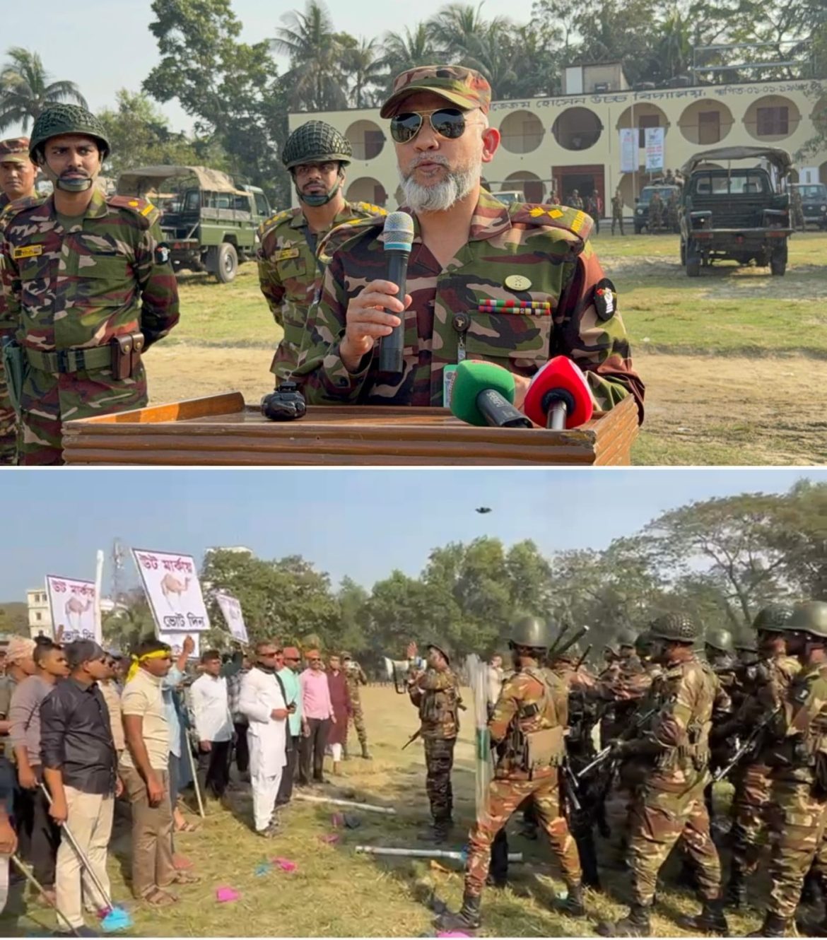 মহড়া পরিদর্শন শেষে তিনি সকল ভোটারদেরকে শান্তিপূর্ণ ও নিরাপদ পরিবেশে ভোটাধিকার প্রয়োগের বিষয়ে আশ্বস্ত করে বলেন,নির্বাচনকে কেন্দ্র করে যে কোনো ধরনের অনাকাঙ্ক্ষিত ঘটনা মোকাবেলায় সেনাবাহিনী সর্বদা প্রস্তুত রয়েছে। বিশেষ করে ১২ ফেব্রুয়ারী জাতীয় নির্বাচনের ভোটগ্রহণের সময় দুর দুরান্ত থেকে ভোট দিতে আসা সর্বস্তরের ভোটারদের নিরাপত্তা নিশ্চিত করতে বাংলাদেশ সেনাবাহিনীর কঠিন ভূমিকা পালনের পাশাপাশি আমাদের সাথে আরো পাঁচটি ফোর্স একসাথে কাজ করবে। সাধারণ ভোটার যারা আছেন আপনারা নিরাপদে ভোটকেন্দ্র আসবেন এবং আপনাদের মহা মুল্যবান ভোট প্রদান করবেন। কিন্তু কেউ ভোটকে বানচাল এবং প্রশ্নবিদ্ধ করার চেস্টা করলে দুষ্কৃতকারীরা শতগুণ শাস্তির প্রতিফল পাবে। ইনশাআল্লাহ