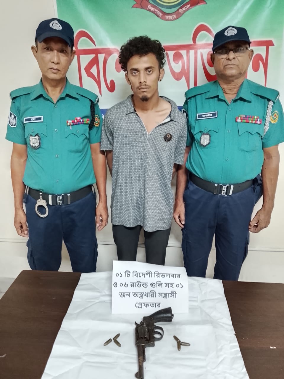 অস্ত্রের ম্যাগাজিন থেকে উদ্ধার করা হয় ছয় রাউন্ড ৯এমএম গুলি।