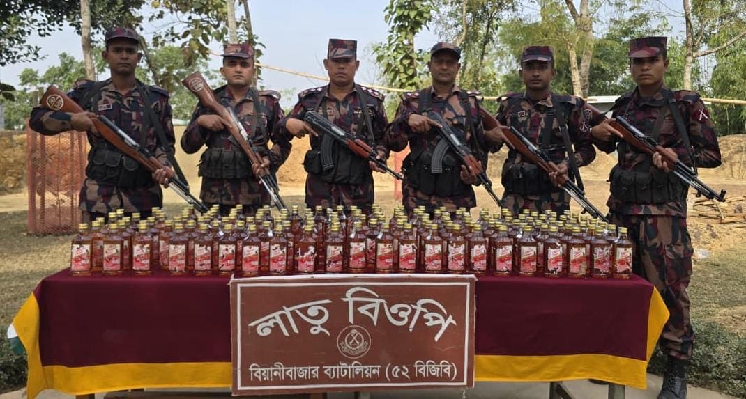 বিজিবি গণমাধ্যমে দেয়া এক বিজ্ঞপ্তিতে জানা যায়, গত ৩১ জানুয়ারি রাত আনুমানিক ০৯ টা ৫০ মিনিটে গোপন সংবাদের ভিত্তিতে বিয়ানীবাজার ব্যাটালিয়ন (৫২ বিজিবি) উপজেলার লাতু বিওপির একটি টহল দল সীমান্ত পিলার ১৩৬৪/১১-এস হতে ১.৫ কিঃ মিঃ বাংলাদেশের অভ্যন্তরে মৌলভীবাজারের বড়লেখা উপজেলার উত্তর শাহবাজপুরের আতুয়া ইসলামপুর এলাকায় অভিযান পরিচালনা করে। এ সময় চোরাকারবারীরা ধারালো অস্ত্র নিয়ে বিজিবির টহল দলকে ঘিরে ফেলে। পরিস্থিতি নিয়ন্ত্রণে আত্মরক্ষার্থে বিজিবি চার রাউন্ড ফাঁকা গুলি ছোড়ে। এতে চোরাকারবারীরা পালিয়ে গেলে ঘটনাস্থল থেকে ৯৫ বোতল ভারতীয় মদ উদ্ধার করা হয়। পরে আলামত নিয়ে ক্যাম্পে ফেরার পথে