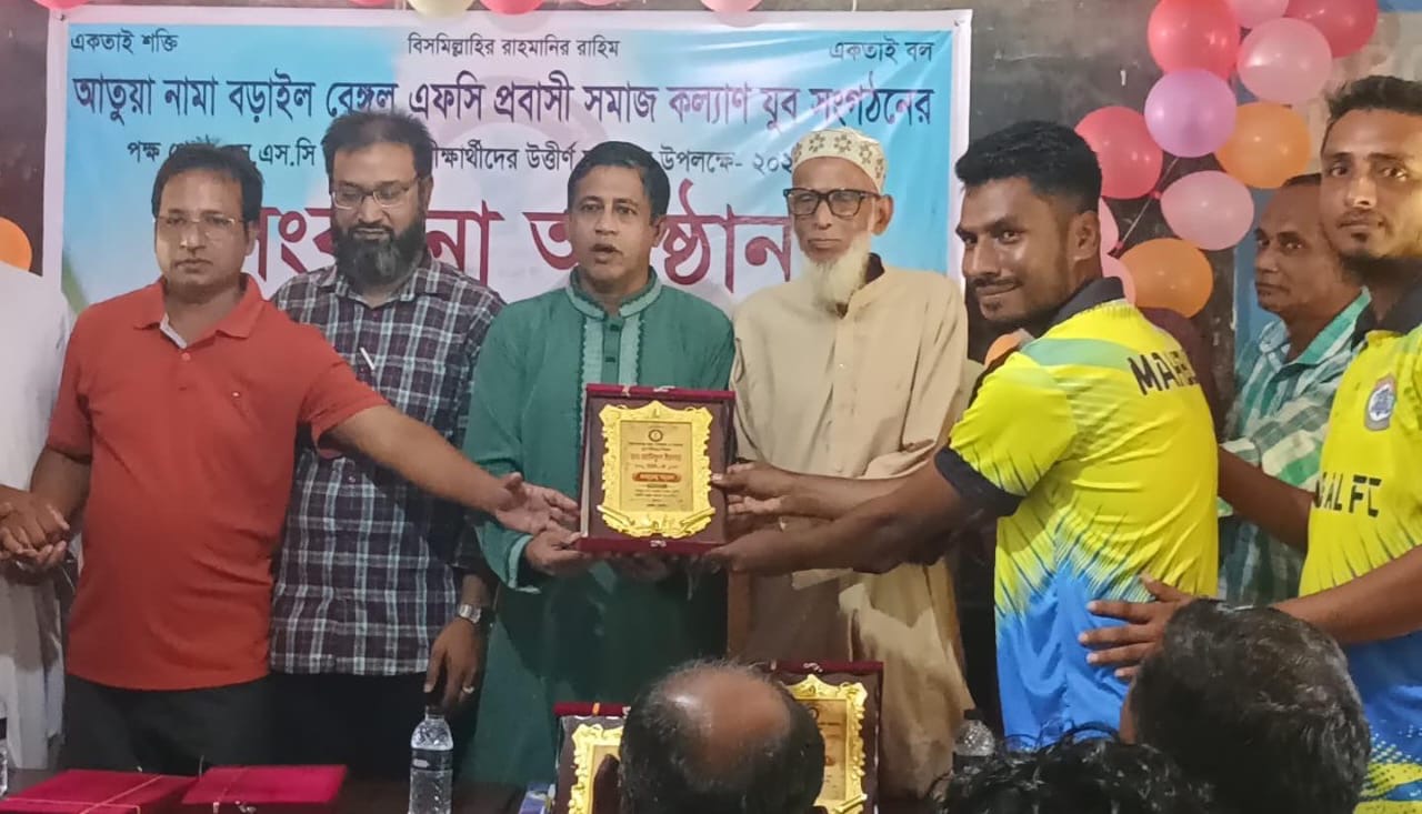 বড়লেখা(মৌলভীবাজার) প্রতিনিধিঃ মৌলভীবাজারের বড়লেখা উপজেলার উত্তর শাহবাজপুর ইউনিয়নের আতুয়া ও নামা বড়াইল গ্রামের প্রবাসী তরুণদের সংগঠন ‘বেঙ্গল এফসি প্রবাসী সমাজকল্যাণ যুব সংগঠন’ এর উদ্যোগে এসএসসি ও দাখিলে উত্তীর্ণ ১৮ জন কৃতি শিক্ষার্থীদের সংবর্ধনা দেওয়া হয়েছে।