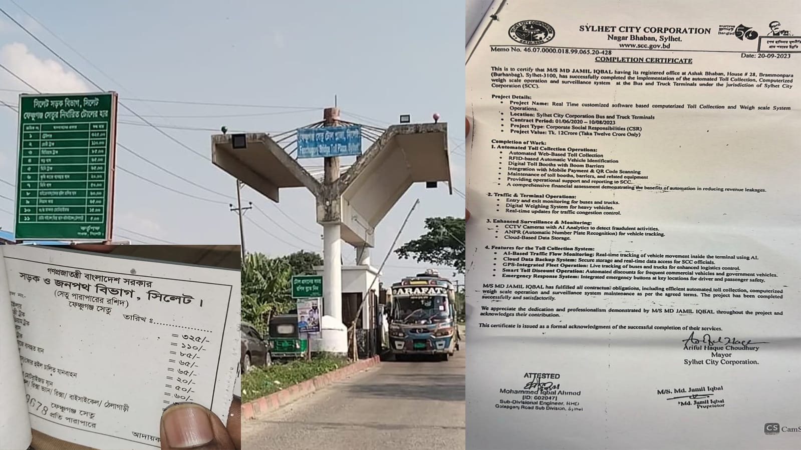 ‘মেসার্স মো. জামিল ইকবাল’ নামের প্রতিষ্ঠান ছয়টি টোল প্লাজার সর্বনিম্ন দরদাতা হলেও তারা যে অভিজ্ঞতা সনদ জমা দিয়েছে তা নিয়ে প্রশ্ন উঠেছে। প্রতিষ্ঠানটি দাবি করেছে, ২০২০–২০২৩ সালে সিলেট সিটি করপোরেশনের (সিসিক) ১২ কোটি টাকার একটি প্রকল্পে তারা কাজ করেছে—যেখানে ছিল স্বয়ংক্রিয় টোল আদায়, ওজন পরিমাপ ব্যবস্থা ও সিসিটিভি স্থাপন।