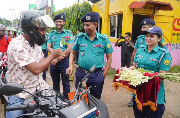 বৃহস্পতিবার দুপুরে সিলেটের হুমায়ুন রশীদ চত্বর এলাকায় ট্রাফিক আইন মানতে উদ্ভূদ্ধ করতে মোটর সাইকেল চালকদের ফুল দিয়ে শুভেচ্ছা জানান পুলিশ কমিশনার। এসময় সাংবাদিকদের সাথে আলাপকালে তিনি এমনটি বলেন।