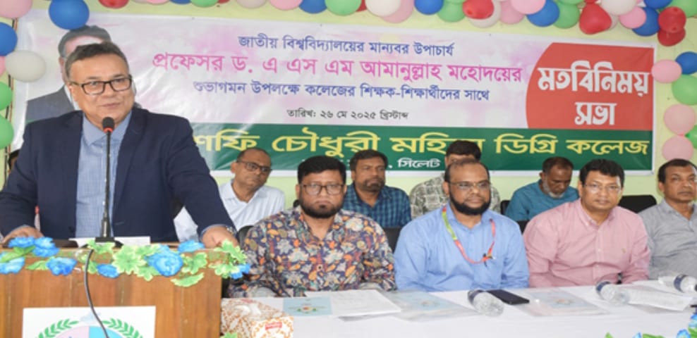 সিলেট প্রতিনিধি: সিলেটের দক্ষিণ সুরমার লতিফা-শফি চৌধুরী মহিলা ডিগ্রি কলেজে অনুষ্ঠিত এক মতবিনিময় সভায় জাতীয় বিশ্ববিদ্যালয়ের উপাচার্য প্রফেসর ড. এ এস এম আমানুল্লাহ বলেছেন, “সারা বিশ্ব এখন একসাথে যুক্ত। সিলেটে বসেই সারা বিশ্বে কাজ করা সম্ভব।” তিনি জানান, জাতীয় বিশ্ববিদ্যালয়ের উদ্যোগে আসছে বছর থেকে ৫ হাজার মেয়েকে ফ্রিতে ফ্রিল্যান্সিং প্রশিক্ষণ দেওয়া হবে, যাতে তারা কলেজ জীবন থেকেই নিজের ক্যারিয়ার গড়তে পারে।